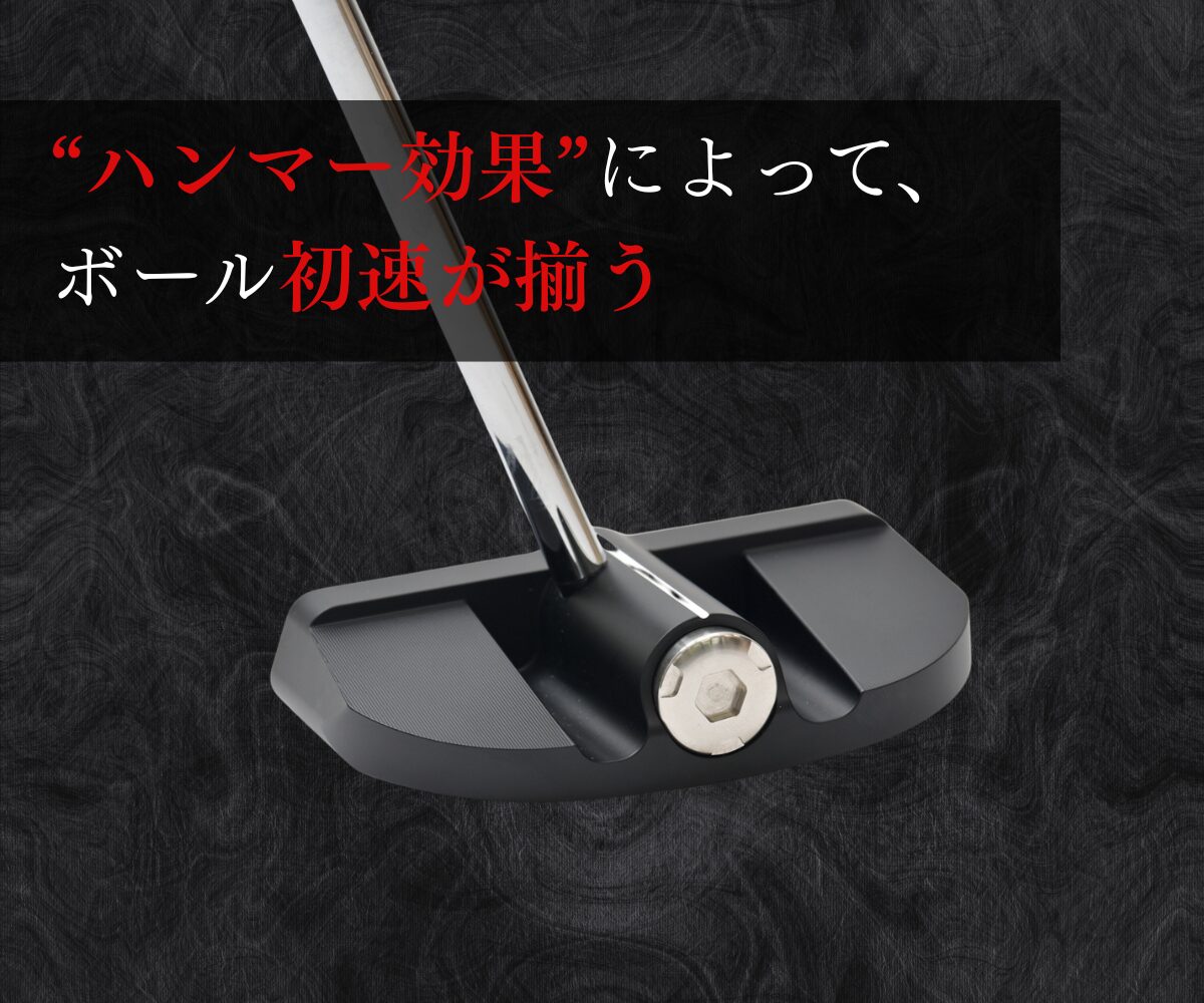 さらに、太いアライメントラインとの組み合わせでストロークが安定。 「ハンマー効果」による高い転がり性能が、パッティングをワンランク上へ引き上げます。